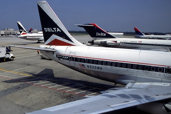 Del 05/84, in bare metal scheme. Taken before boarding flight Jackson Hole - Pocatello - Salt Lake City (JAC-PIH-SLC).
